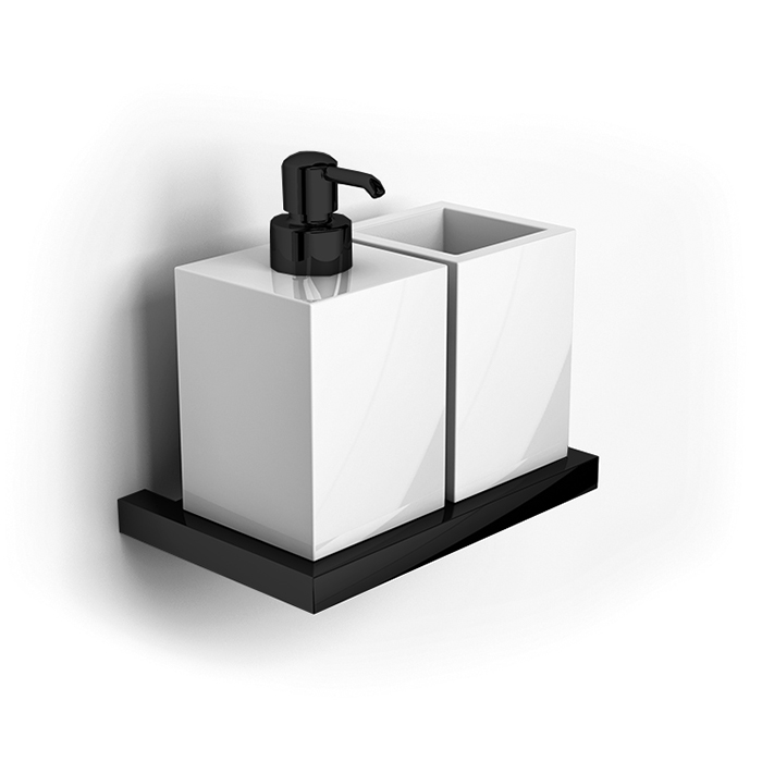 Gattoni Kubik держатель подвесной с дозатором для мыла и стаканом керамическим, цвет: черный матовый