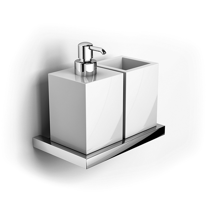 —Gattoni Kubik держатель подвесной с дозатором для мыла и стаканом керамическим, цвет: хром
