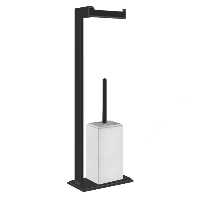 Gessi Eleganza Напольная стойка с держателем для туалетной бумаги и ершиком, цвет: черный металлик/белый