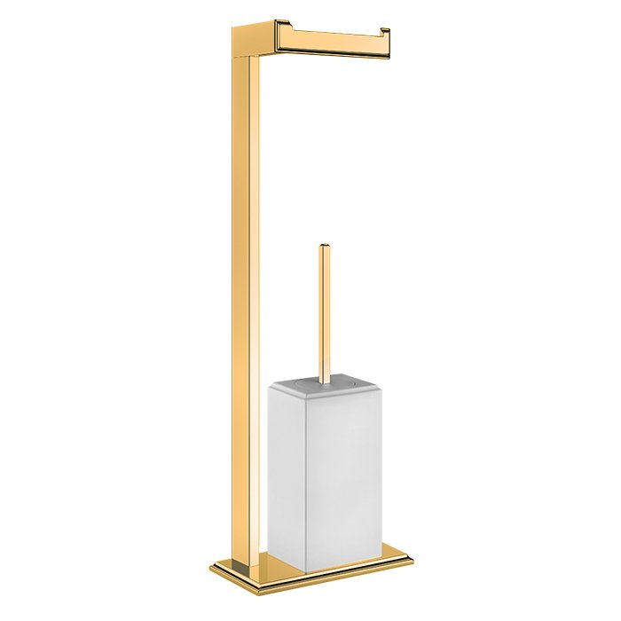 —Gessi Eleganza Напольная стойка 61см., с держателем для туалетной бумаги и ершиком, цвет: золото/белый