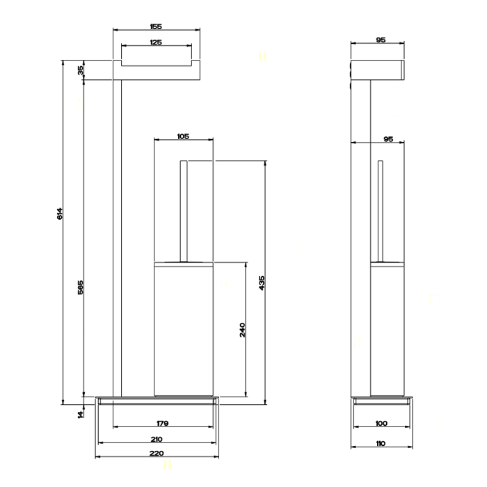 —Gessi Rettangolo Стойка 61.4см., с держателем для туалетной бумаги и ершиком, напольная, цвет: хром/белый