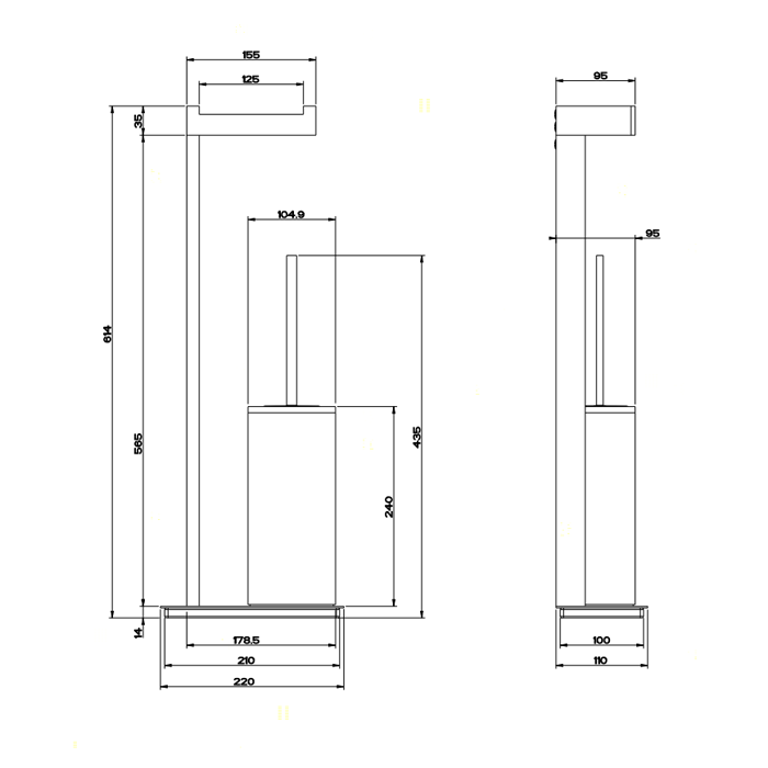 Gessi Rettangolo Стойка с держателем 61.4см., для туалетной бумаги и ершиком, напольная, цвет: хром/черный