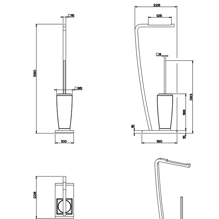 Gessi Mimi Напольная стойка 59см., с держателем для туалетной бумаги и керамическим ершиком, подвесной, цвет: хром