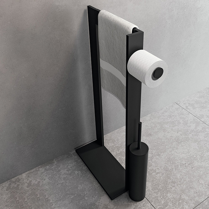NOVELLINI KUADRA Стойка напольная с полотенцедержателем, держателем туалетной бумаги и ершиком для унитаза, цвет черный матовый