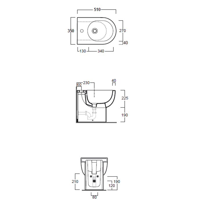 SIMAS E-LINE Биде  напольное приставное 51х35см, цвет: белый