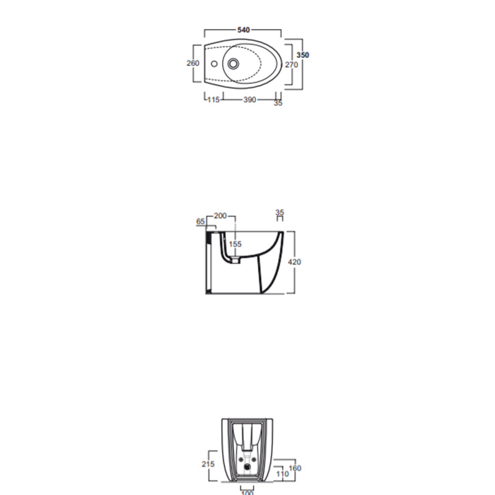 Simas Bormio Биде приставное с 1-м отверстием под смеситель 54х35 см, цвет: белый