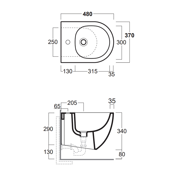 SIMAS Vignoni Биде подвесное XS 37х48 см, с 1 отв. под смеситель, цвет: белый (без креплений F85)