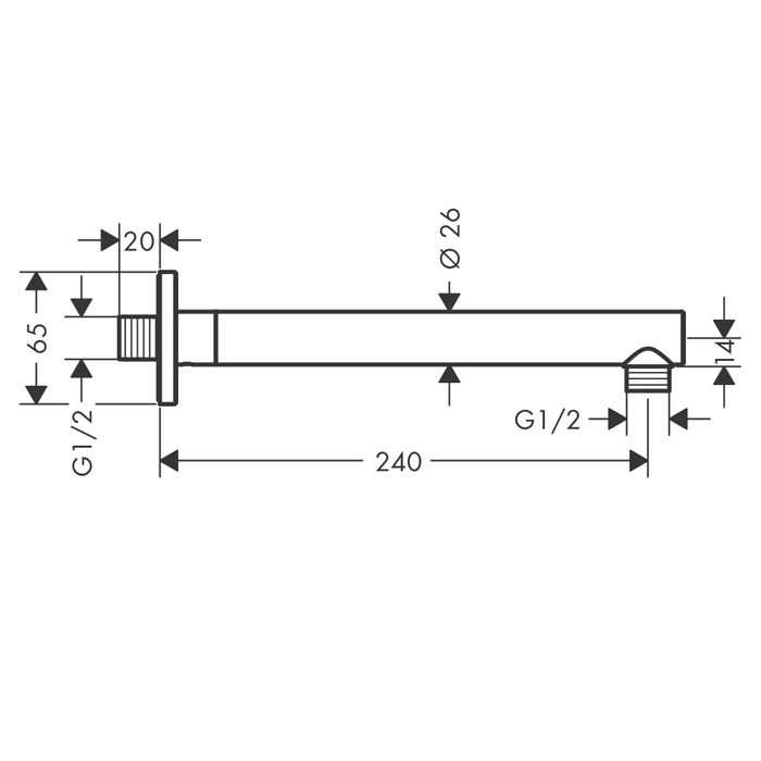 HG Vernis Shape Держатель верхнего душа 24 см, настенный, G1/2, цвет: хром