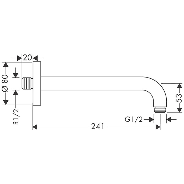 HG Держатель верхнего душа, настенный, 241мм, G1/2, цвет: хром