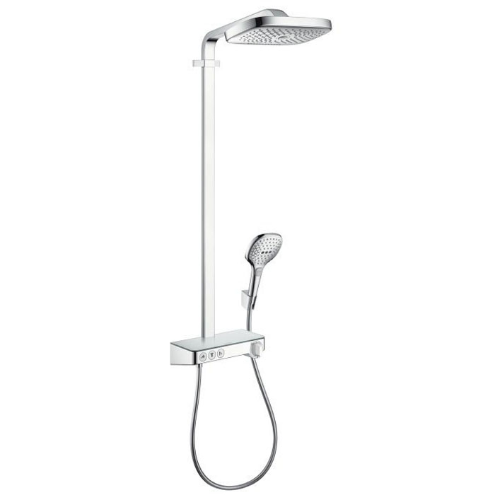 HG Raindance Select E Душевая система Showerpipe: верх.душ 300 3jet, ручн.душ, шланг, термостат с полочкой, цвет: хром