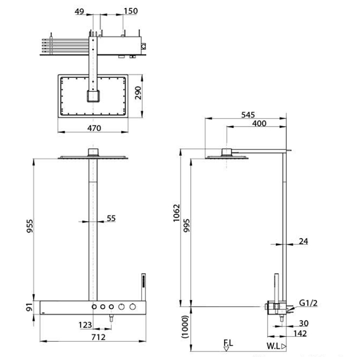 TOTO Z Душевая стойка с термостатическим смесителем, верхним и ручным душем 112x545x1113мм с белой полочкой, цвет: хром