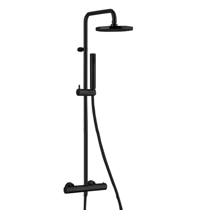 Fantini Nostromo Душевая стойка, с верхнем душем 20см., с ручным душем и термостатический, смесителем, цвет: черный матовый