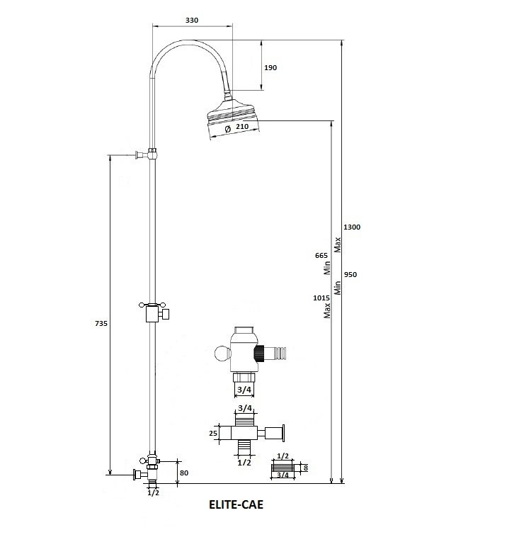 Душевая стойка с ручным и верхним душем CEZARES ELITE-CAE
