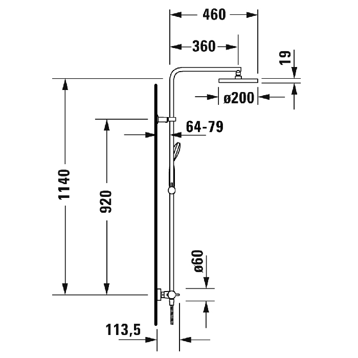—Duravit B.2 Душевая колонна с термостатическим смесителем, верхним душем, штангой и лейкой, цвет: хром