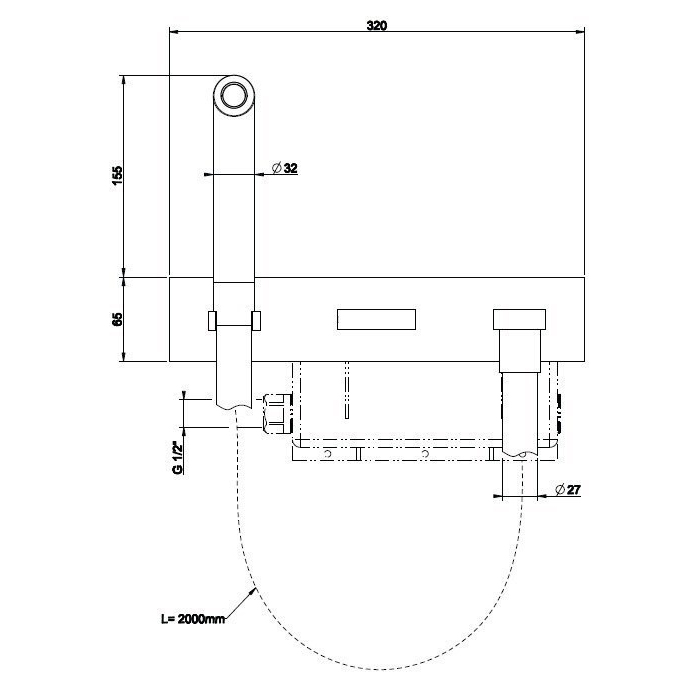 —Gessi Water Tube Kneip Душевой комплект: смеситель, ручной душ (пластик), вывод для воды, шланг, цвет: хром