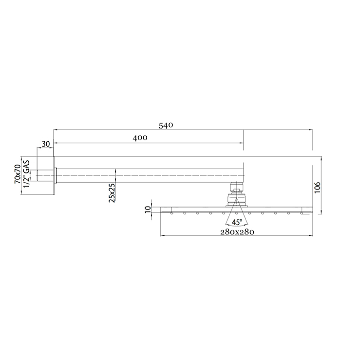 —Bossini Верхний душ COSMO 280х280 мм, с кронштейном 400 мм, черный матовый