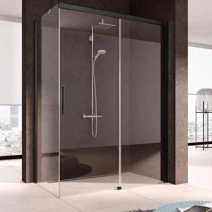 Душ. дверь для боковой стенки NICA D2L 1800x2000 с доводчиком, н.ч. справа ЧЕРНЫЙ+klar+clean