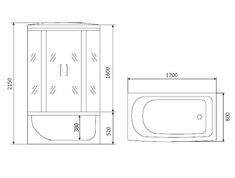 - высокий акриловый поддон-ванна (высота 52 см, глубина 38 см)