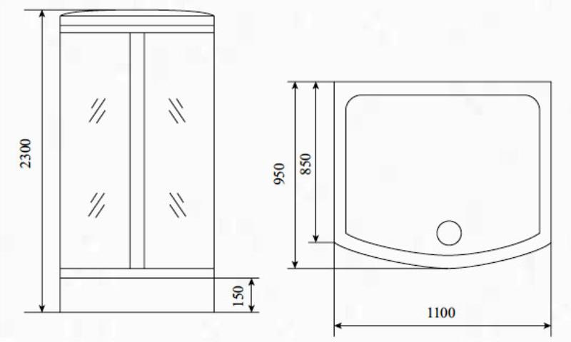 - низкий акриловый поддон на жестком каркасе с сифоном, высота 15 см