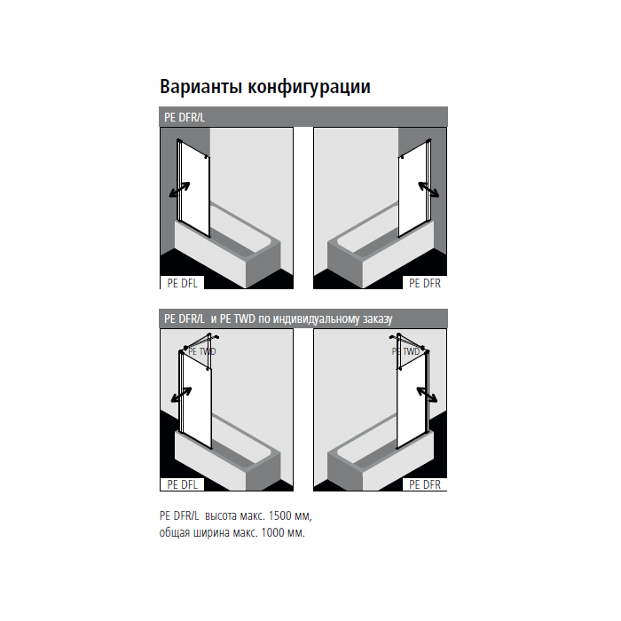 —Kermi Pega Штора на ванну PE DFR 75x150см., глянцевое серебро, прозрачное стекло