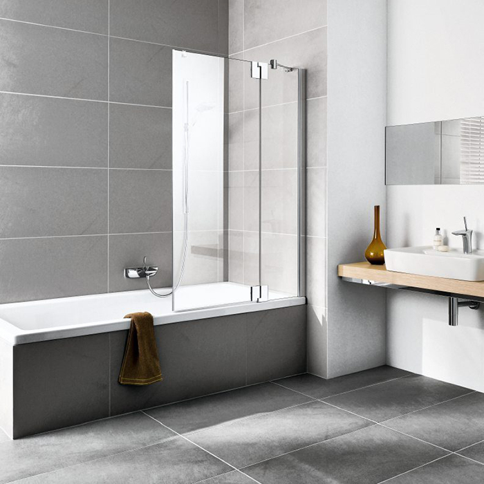 KERMI PASA XP Шторка на ванну 900х1500 мм., стеклянная, крепление справа, фурнитура серебристый глянцевый, стекло ESG прозрачное с Kermi-CLEAN