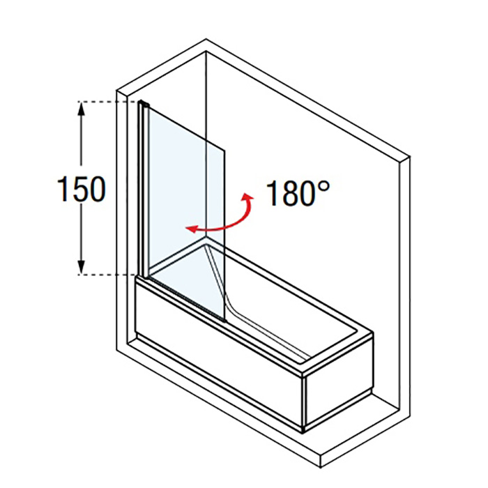 —Novellini Aurora Шторка на ванну 75х150см., стекло, цвет: хром