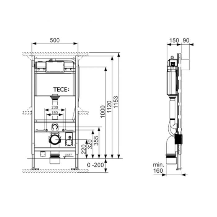 TECE Модуль для установки подв. унитаза TOTO Neorest, высота h1120мм, с креплением к стене