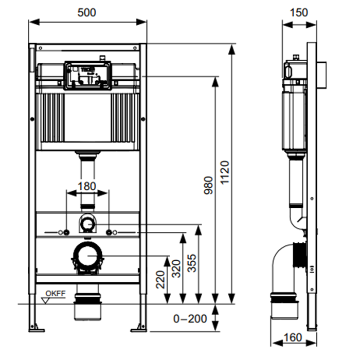 —TECEbase 2.0 Комплект 5 в 1, унитаз TECE One, инсталяция для подвесного унитаза, клавиша смыва TECEnow черный глянец, крепеж для монтажа, звукоизоляция