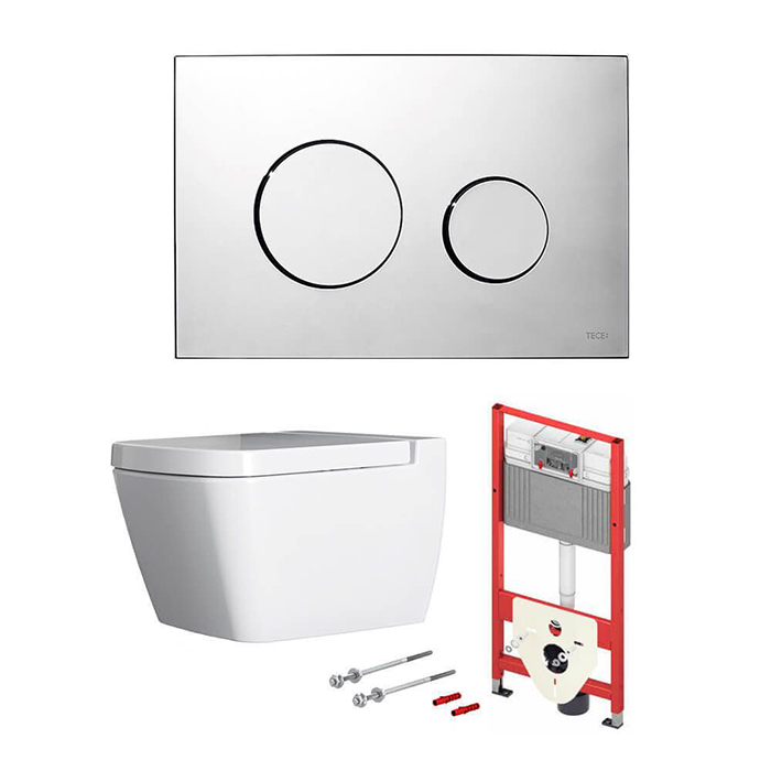 —TECEbase 2.0 Комплект 5 в 1, унитаз TECE One, инсталяция для подвесного унитаза, клавиша смыва TECEloop хром, крепеж для монтажа, звукоизоляция