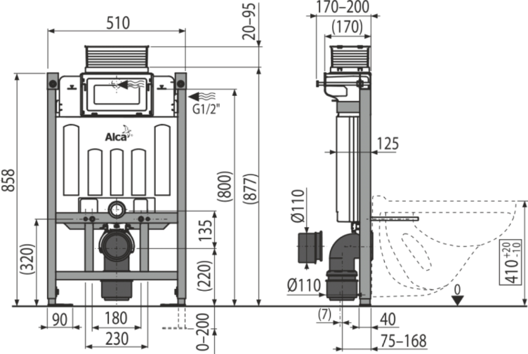 —Система инсталяции, управление сверху или спереди, H=850, арт.AM118/850
