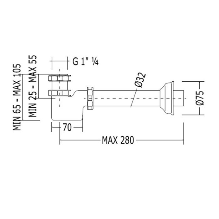 —Devon&Devon Сифон для раковины/биде под донный клапан, 1 1/4", цвет: хром