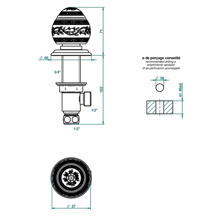 THG MARQUISE NOIR DECOR OR Вентиль смесителя для раковины, ручка черная, декор золото, цвет полированное золото