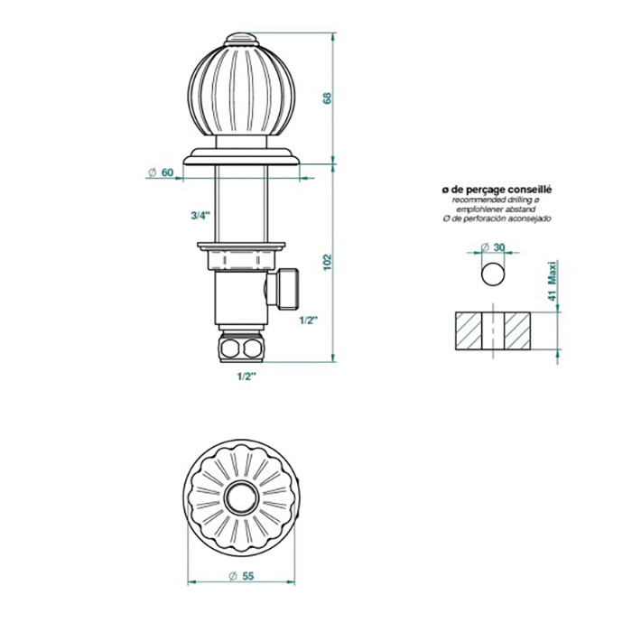 THG  Mandarine metal Вентиль смесителя для раковины, цвет: хром/золото