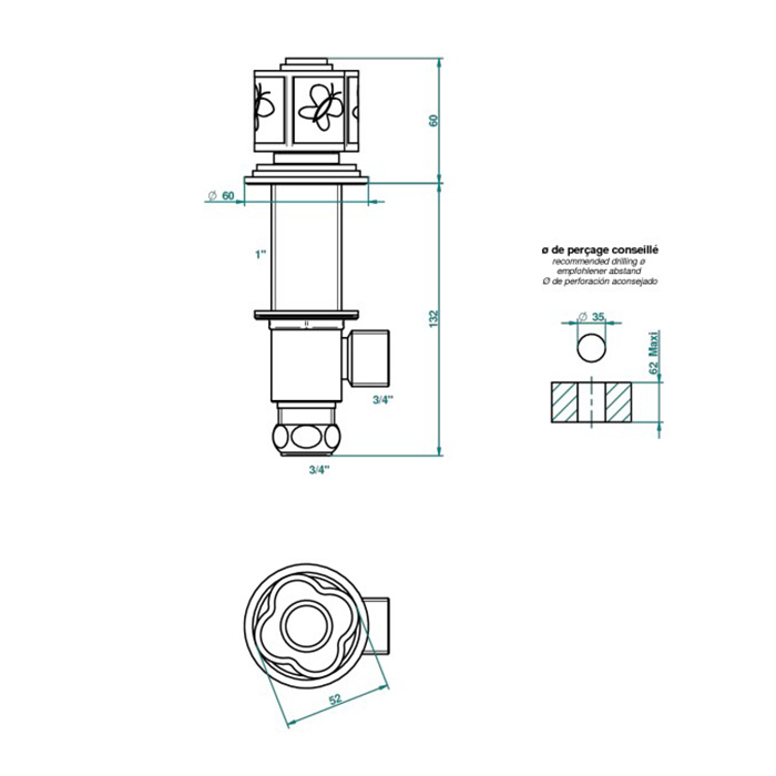 THG CAPUCINE MAUVE DECOR OR Вентиль смесителя для ванны, декор золото/лиловый, цвет полированное золото