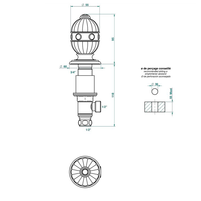• Верхний душ