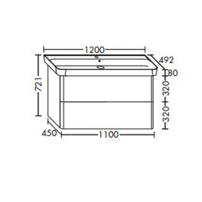 Burgbad Iveo База подвесная с керамическим умывальником с 1 отв под смес. 1200х492х721 мм.2 выдв ящика, сифон в компл. F2833 белый глянц.