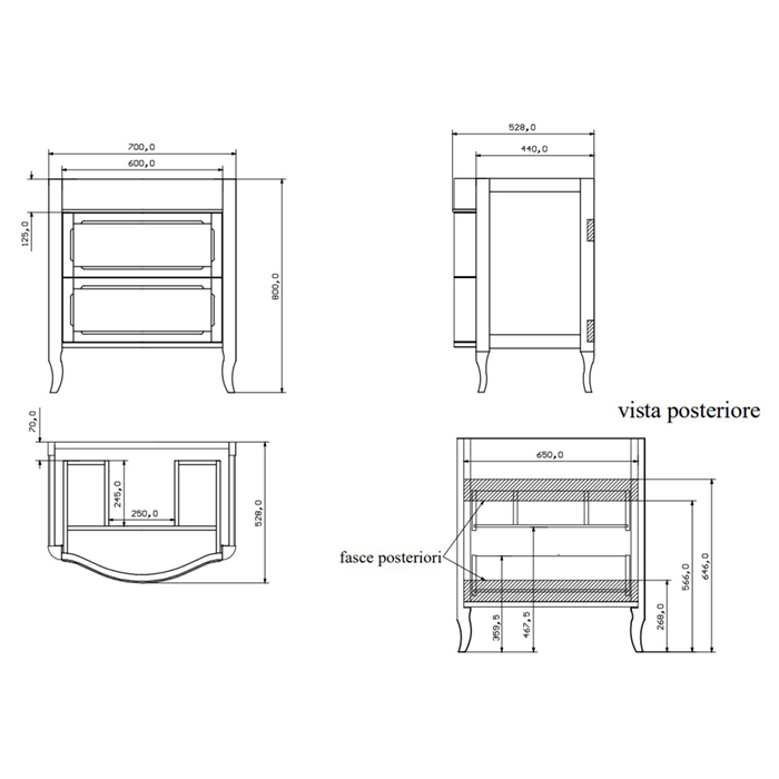 EBAN Rachele Комплект мебели со столешницей Boticino с 1 отв., 75см, Цвет: BIANCO PERLATO