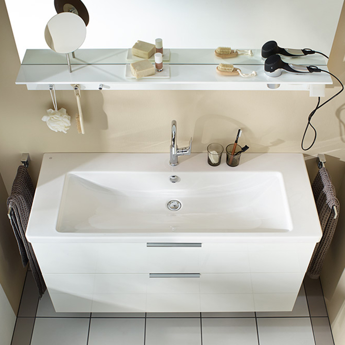 BURGBAD Eqio База подвесная с керамическим умывальником 1230х490х645 мм. 2 ящика с ручкой желоб., c 1 отв под смес.   цвет белый глянц F2009