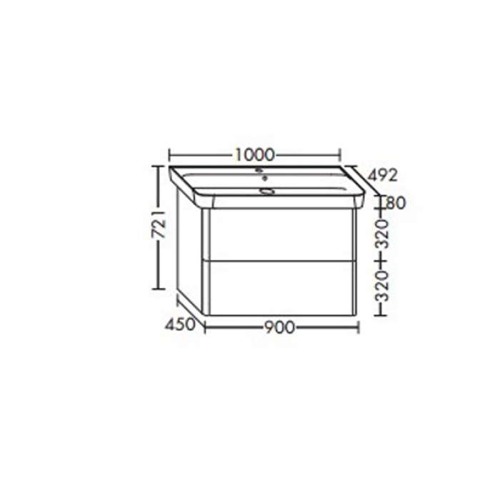 Burgbad Iveo База подвесная с керамическим умывальником с 1 отв под смес. 1000х492х721 мм.2 выдв ящика, сифон в компл.подсветка тумб F2833 белый глянц