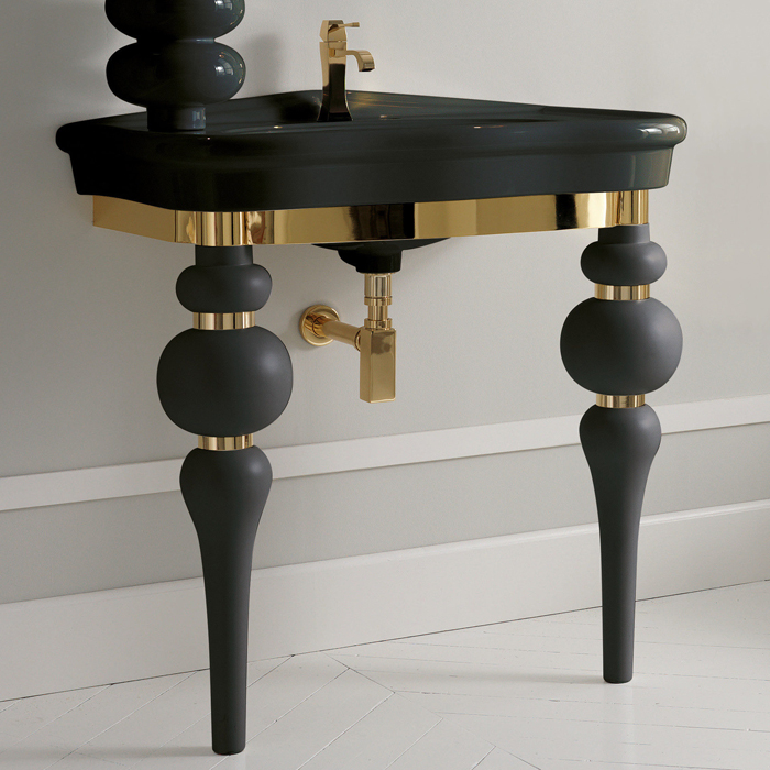 —3SC Consolle Консоль Via Veneto 70х52хh96см, с раковиной LA11 и сифоном, цвет: черный матовый/золото 24к. Lucido
