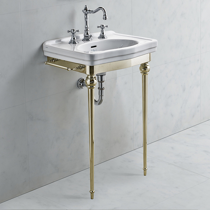 —3SC Consolle Консоль Dandy 58х46хh90см, с раковиной LA01, сифоном и полотенцедердателями, цвет: золото 24к. Lucido