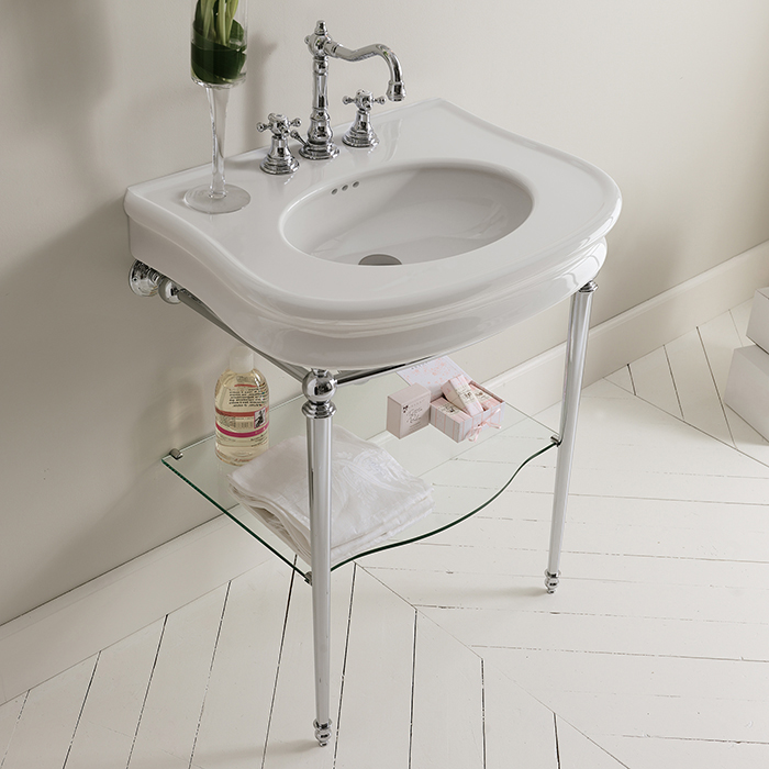 3SC  Консоль Florian 90х54хh86см, с раковиной LA12, сифоном и стекл.полочкой,цвет: хром
