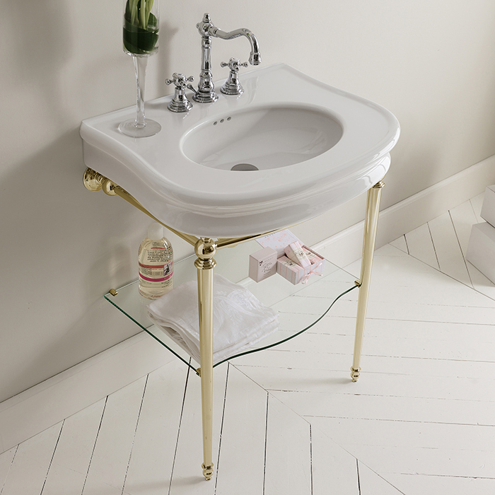 3SC  Консоль Florian 90х54хh86см, с раковиной LA12, сифоном и стекл.полочкой,цвет: золото 24к. Lucido