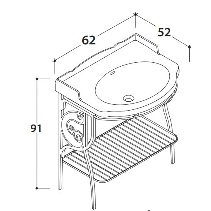 —Globo Paestum Консоль напольная 62х52см, с раковиной на 3 отв., цвет: met.antico