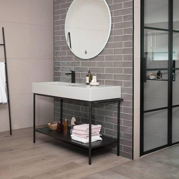 Globo Incantho Металлическая консоль с раковиной 136х51см, чаша слева, без отв., цвет: черный/белый