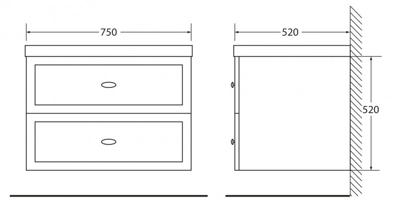 Шкаф подвесной, две распашные двери с доводчиками, две полки внутри DUBLIN-1700-2A-SC-BL