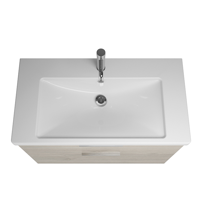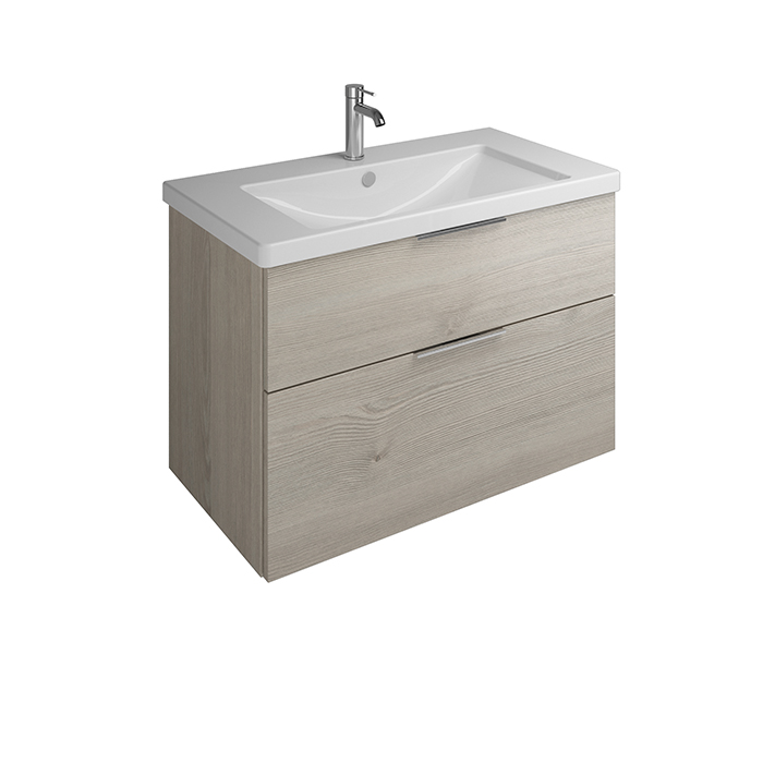 —BURGBAD Eqio База подвесная с керамическим умывальником 93х49х64.5см. 2 ящика с ручкой желоб., c 1 отв под смес. цвет: фланелевый дубовый F2632