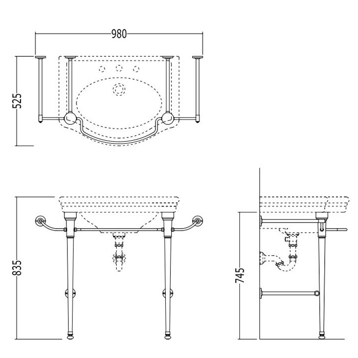—Devon&Devon New Etoileи КоDevon&Devon New Etoile Консоль 98х52.5см, с раковиной на 3 отв, цвет: золото/белая
