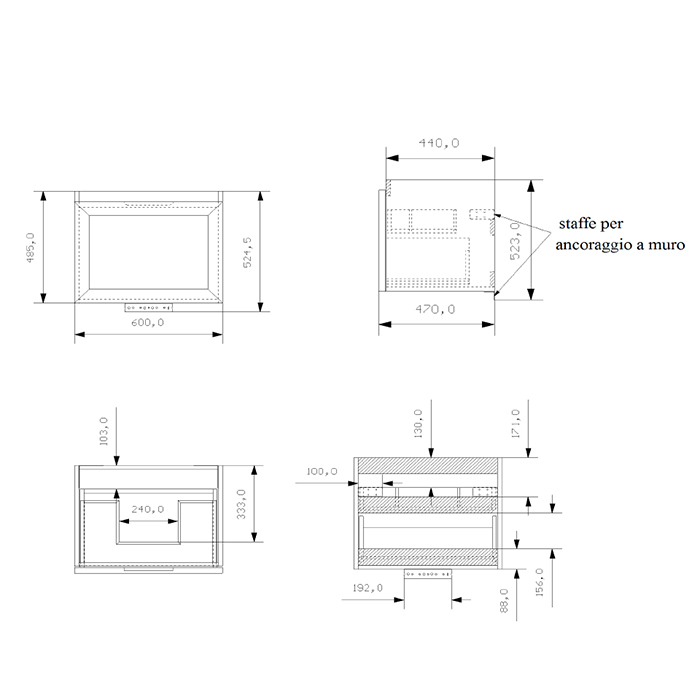EBAN Paola 60, база подвесная 60*47*h48.5, с 1 выдв.+1внутр. ящиками, без ручек, доводчики Blum, цвет bianco assoluto