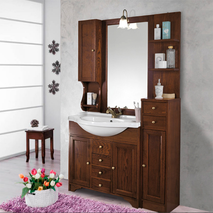 EBAN Eleonora  Modular  Комплект мебели, с раковиной , с тумбой правой, с зеркалом со шкафчиком левым и светильником, шкафчик слева, 107см, цвет: noce